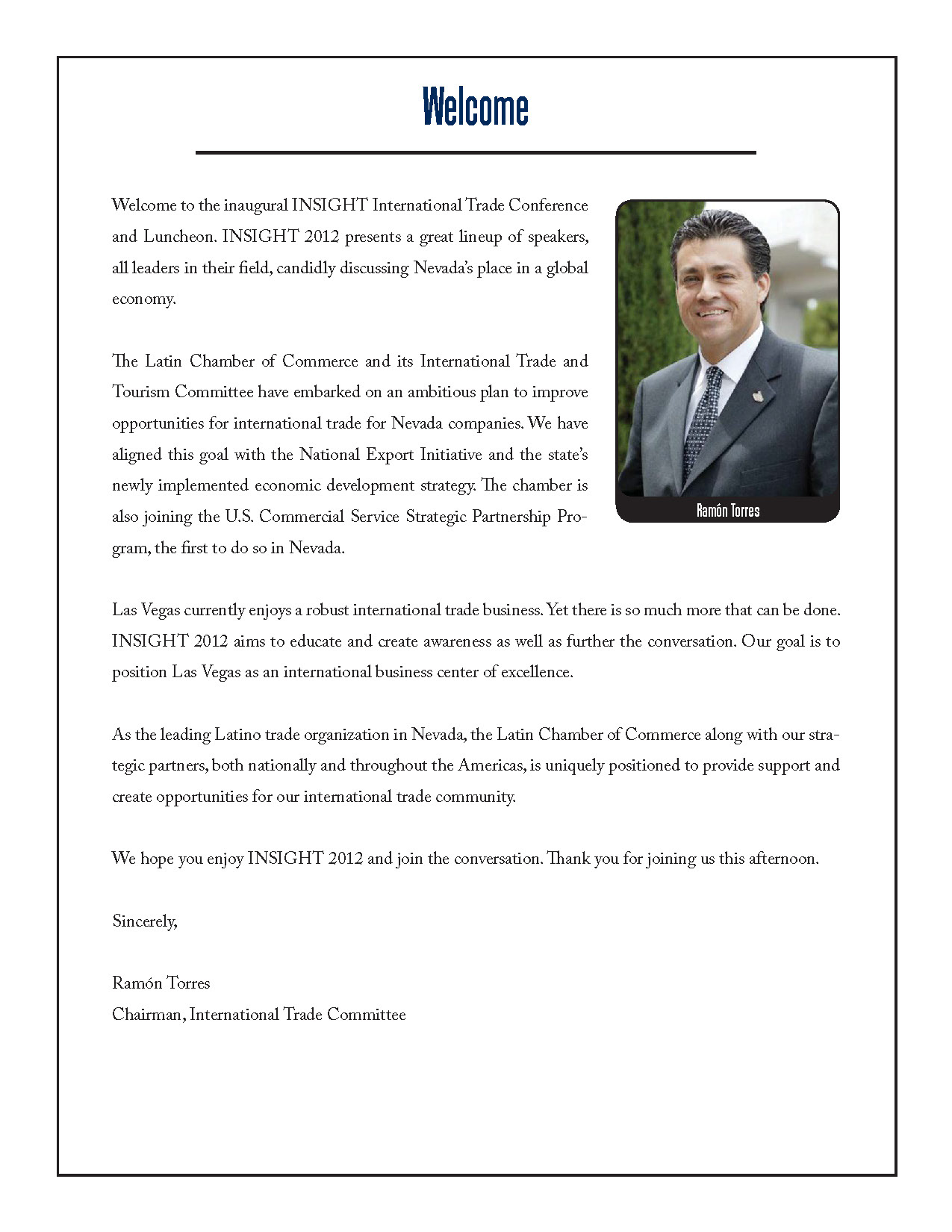 Program Book for International Trade signature conference event.